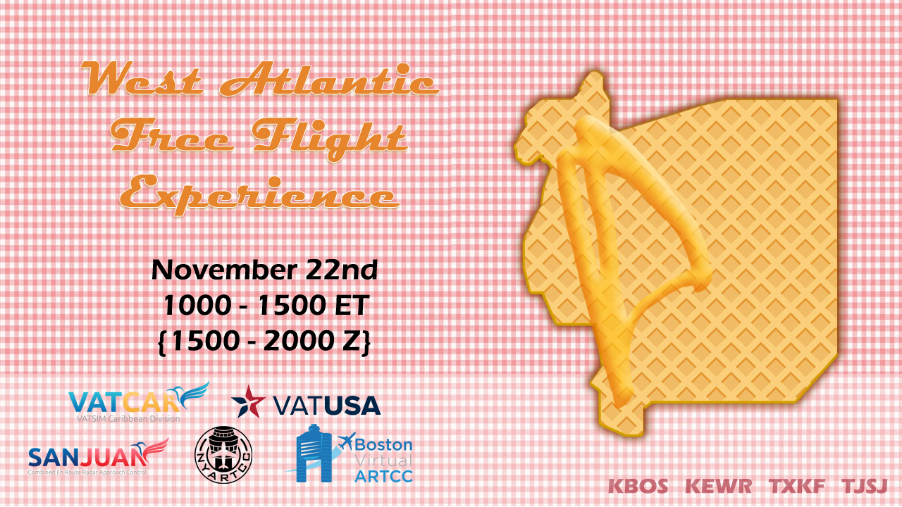 Don’t worry—we’ve cooked up something special for you! The West Atlantic Free Flight Experience, or WAFFLE will bring guaranteed coverage across the busiest skies of the West Atlantic, with staffing provided by ZBW, ZNY, ZWY, and ZSU ARTCCs.