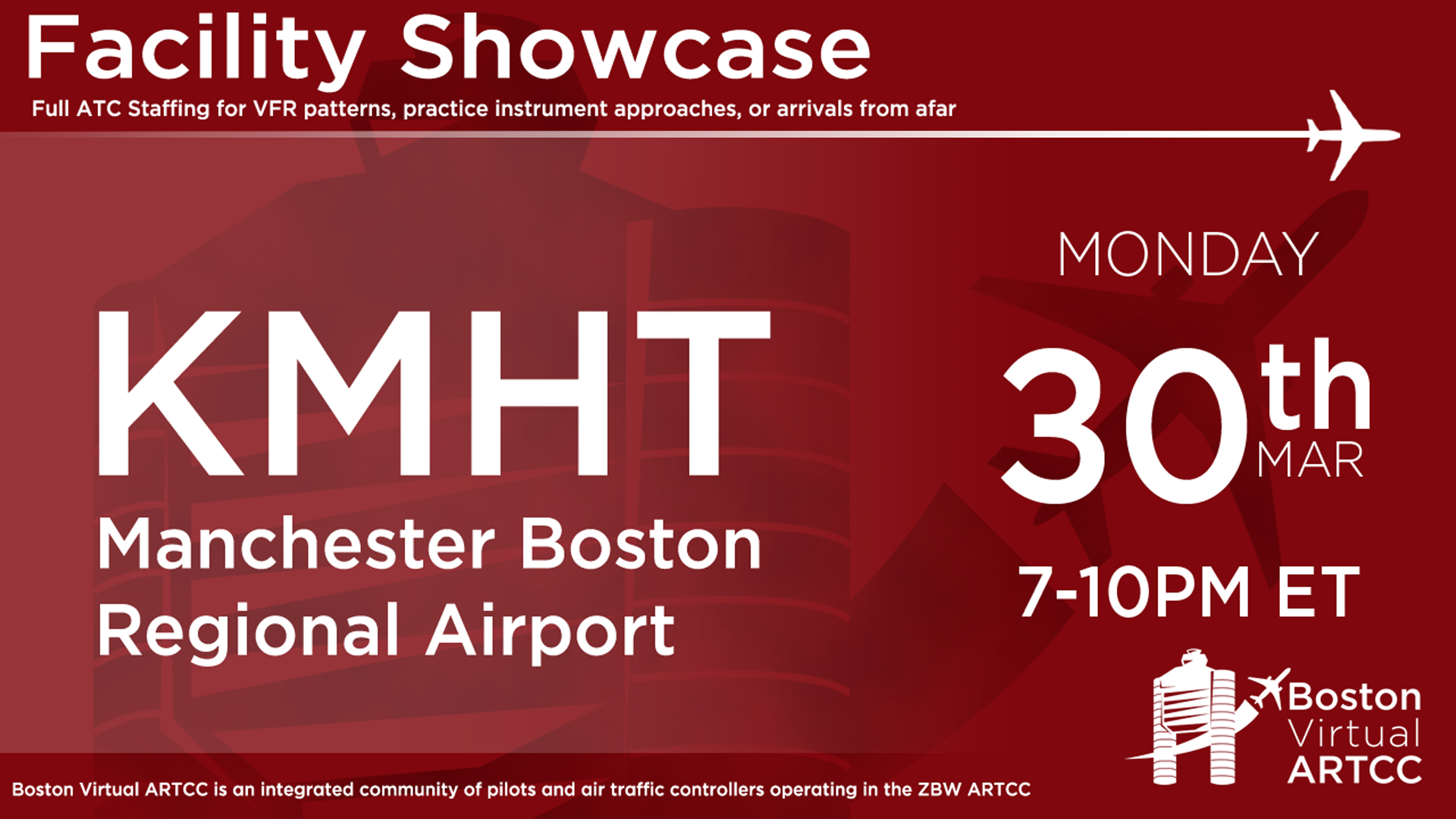 This week's event features the controlled airport of Manchester Boston Regional Airport (KMHT).